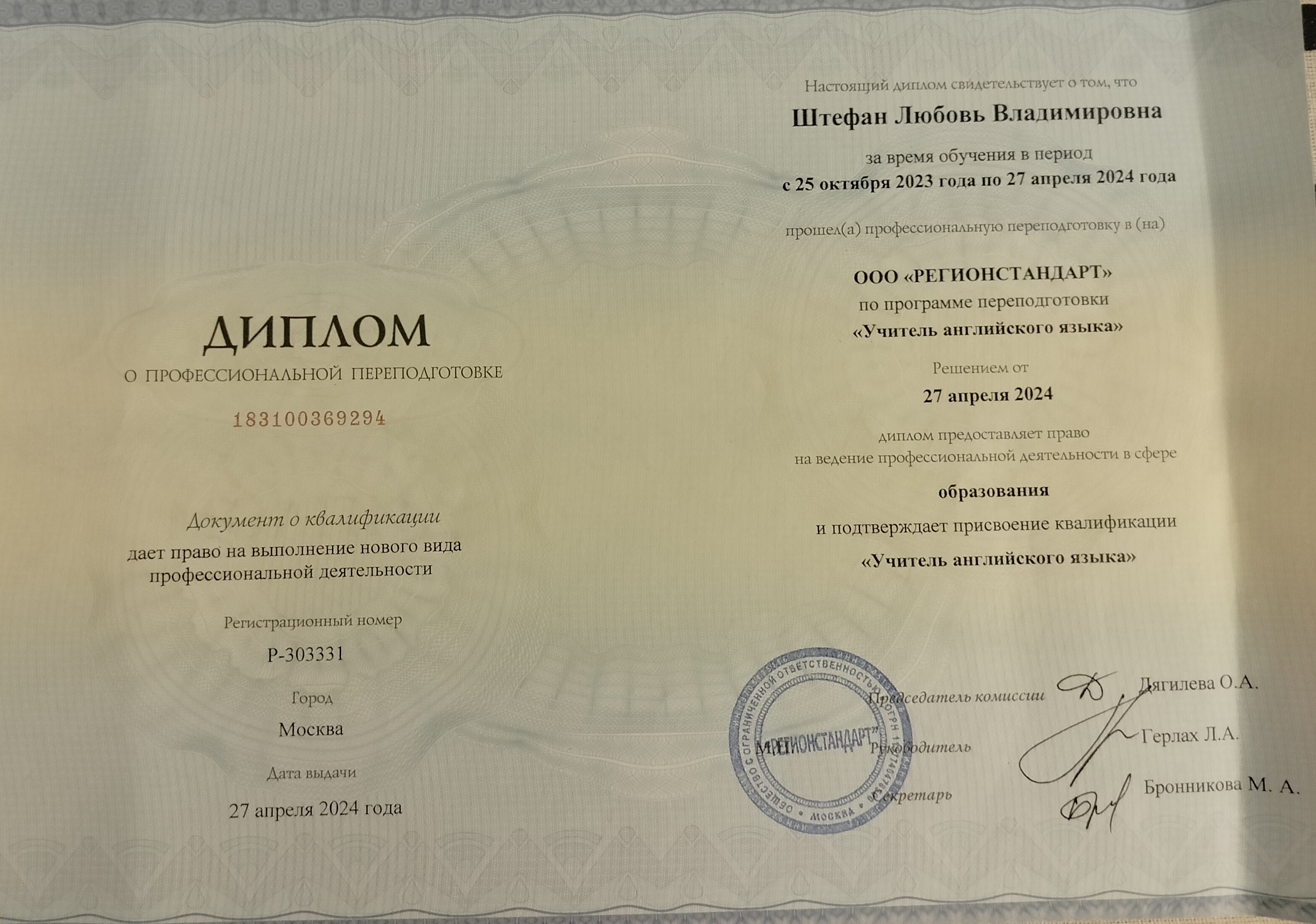 📚 Прошла курс переквалификации на преподавателя английского языка 2024 г.
