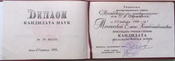 Тамбовский государственный педагогический институт, кандидат филологических наук;