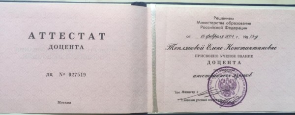 Тамбовский государственный педагогический институт, доцент ВАК.