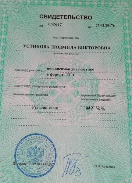 Дополнительная информация: Учитель высшей категории. Репетиторством занимаюсь более 20 лет. 2 выпускника получили 100 баллов по русскому на ЕГЭ. Средний балл после индивидуальной подготовки - 90 баллов. Являюсь экспертом ОГЭ по русскому языку. Имею сертификаты по сдаче ОГЭ, ЕГЭ. Успешно сдала тестирование по МЭШ. Занималась развитием речи по дополнительному образованию в школе.