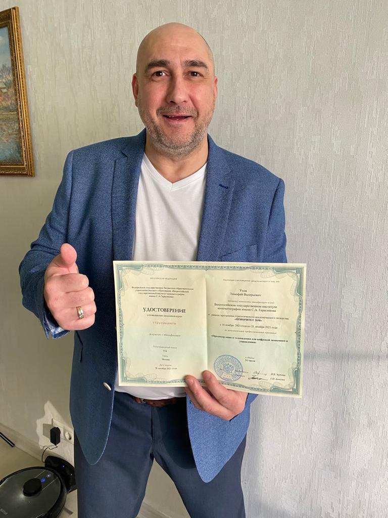 - Образование: ВГИК им. С. А. Герасимова. Факультет режиссерский. Продюсерский в 2022. Актерский - 1987.