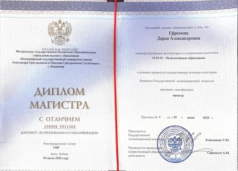 Педагогическое образование, квалификация магистр «Профильное обучение истории»., 01.09.2018 - 04.07.2020