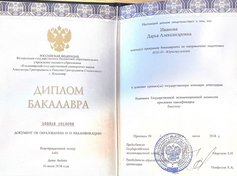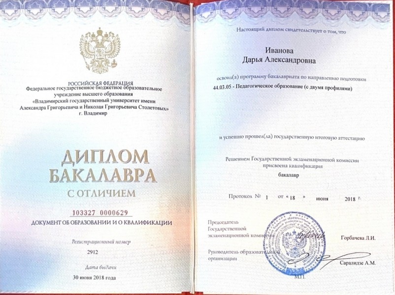 Образование: Учитель истории и правоведения, степень бакалавра по специальности «Педагогическое образование. История. Правоведение» , 01.09.2013 - 18.06.2018