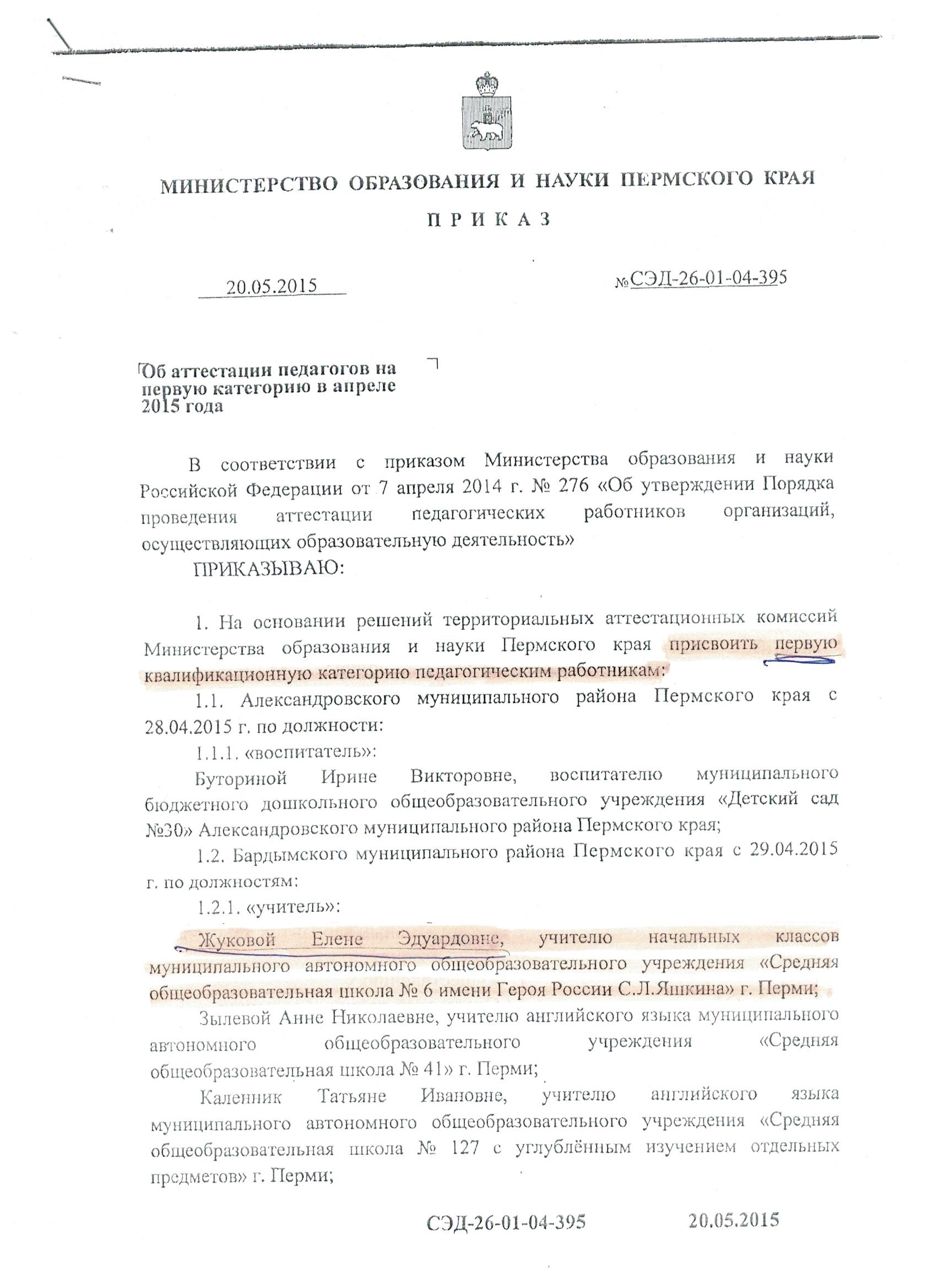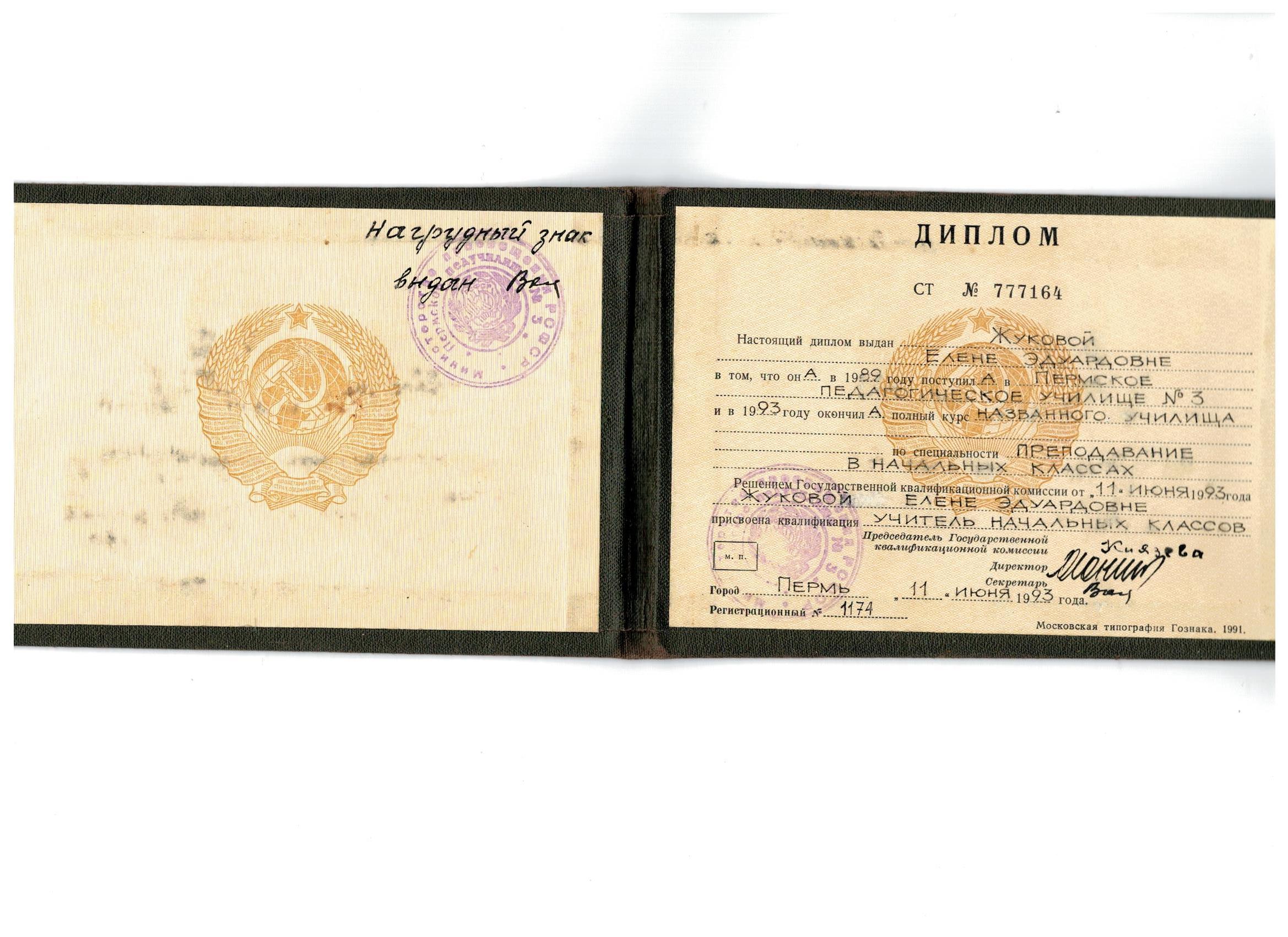 - Образование: Среднее- специальное. Пермское педагогическое училище №3. Факультет начального образования.