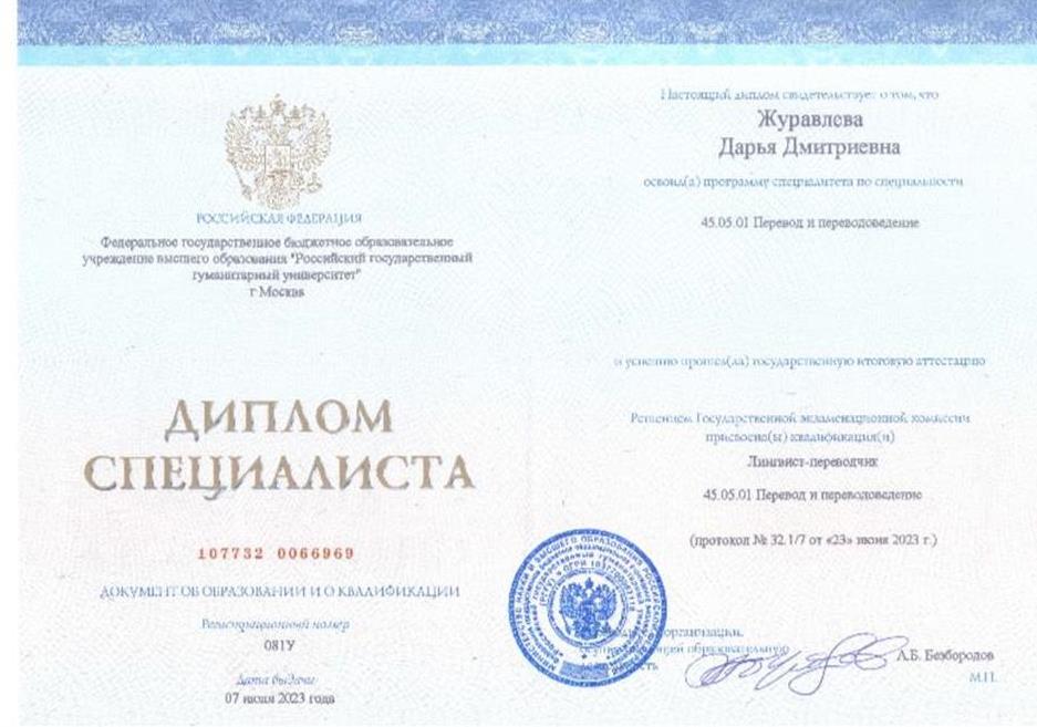 Окончила программу "Перевод и Переводоведение"